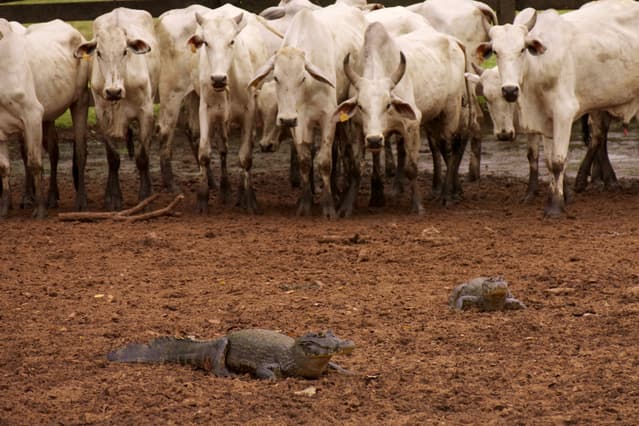 What fascinates me about the Caiman Lodge is how they have drawn a line down the middle of the ranch: one side farming, the other protected land. The frontier between human and animal is a clearly visible line of vegetation. And yet, capybaras graze on the lawn, noisy macaws fill the trees, jaguars sleep in the trees and caiman wander into the cattle enclosures.