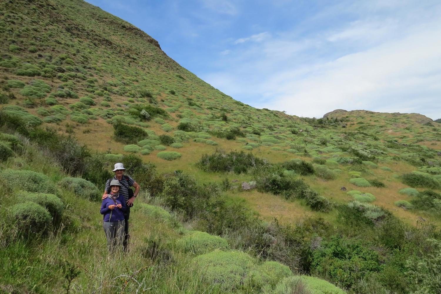 Two Pura clients on the Lagunas Atlas trail in Parque Patagonia