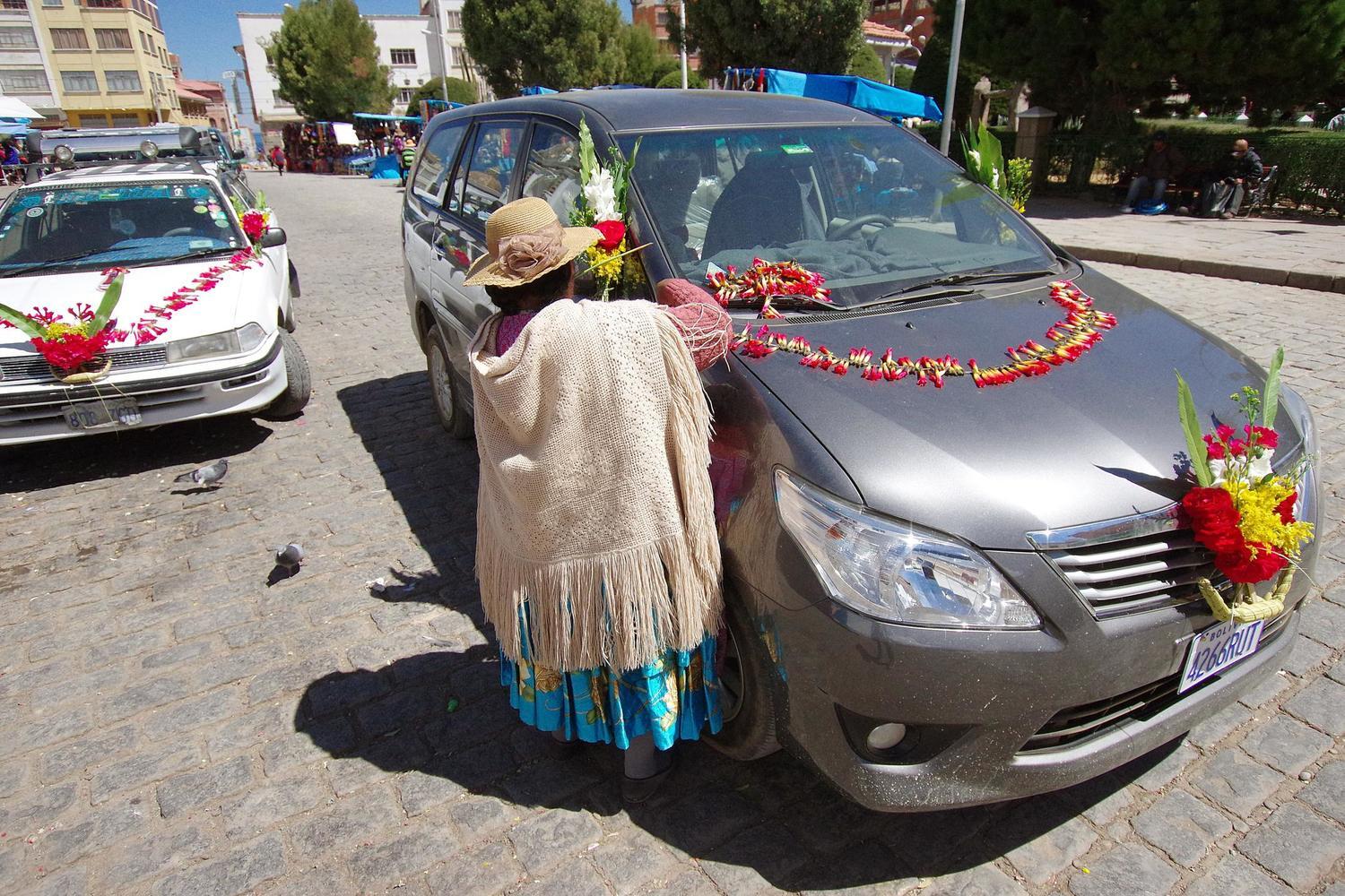 Even more remarkable is the act of purchasing small items representative of future dreams - a house, a new car, wads of money and even a husband or wife - from the local market. These items (basically toys) are then blessed and pinned to miniature models of the Aymaran God of Abundance, who is then soaked in alcohol and has a lit cigarette placed in his mouth - presumably before he then spectacularly goes up in flames.