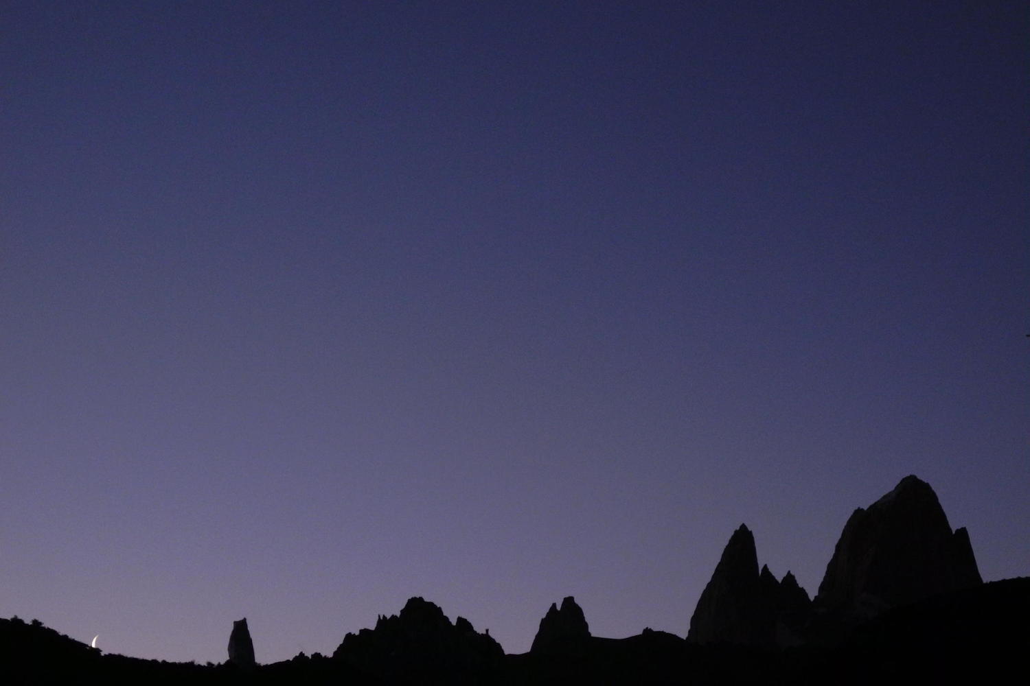 El Chaltén is too close to the mountains to give really good views, you just catch glimpses of the summits above the rooftops and streetlamps. But after sunset the foreground doesn’t matter anymore, there is just the jagged silhouette and the night sky. I nipped out from dinner to take this but was just too late - the crescent moon was almost gone.