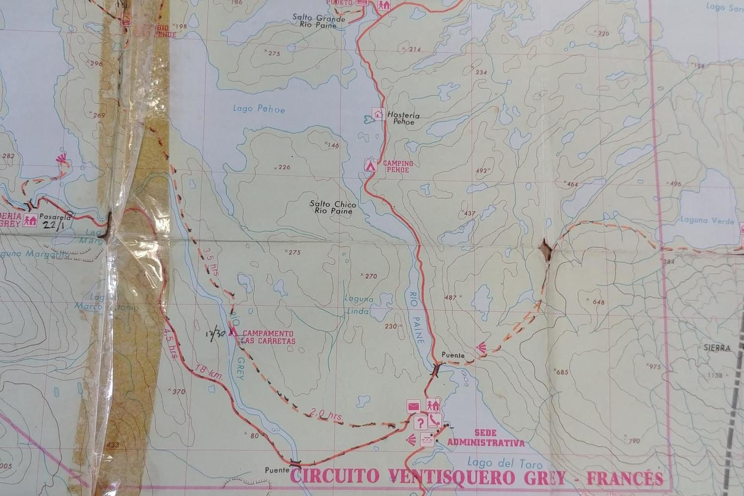 The gaffer-taped remains of my 1995 Torres del Paine map.