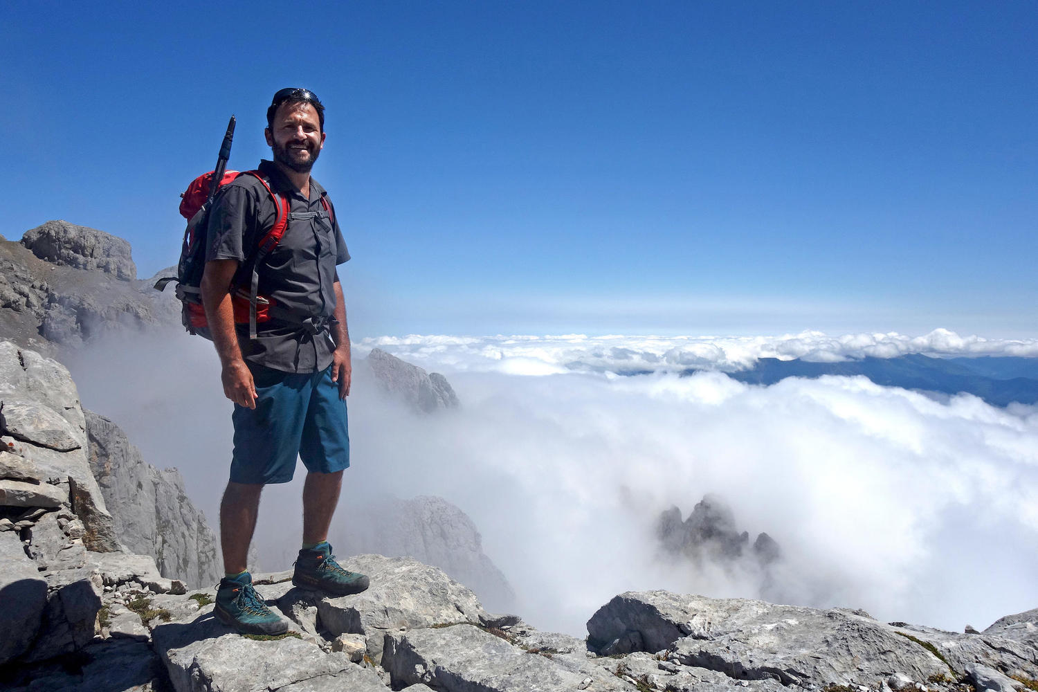 Diego overcoming a challenge of a more physical kind in his beloved Picos mountains.