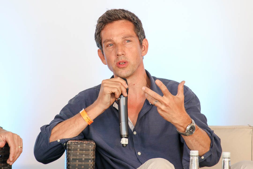 Thomas Power, Co-founder of Pura Aventura, discussing overtourism at the Quilter Cheviot stand during BBC Countryfile Live 2018
